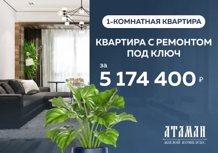 В ЖК «Атаман» — 1-комнатная квартира с ремонтом под ключ всего за 5 174 400 ₽.